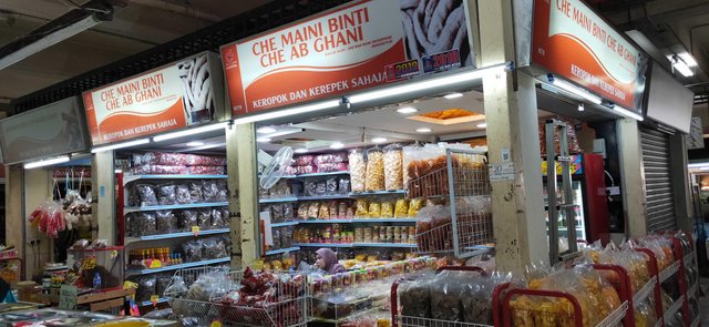底楼的另一边是卖干货的,我看到许多卖虾饼鱼饼等本地小吃,大家刚好来这里转车到新加坡,可以买些手信给朋友。